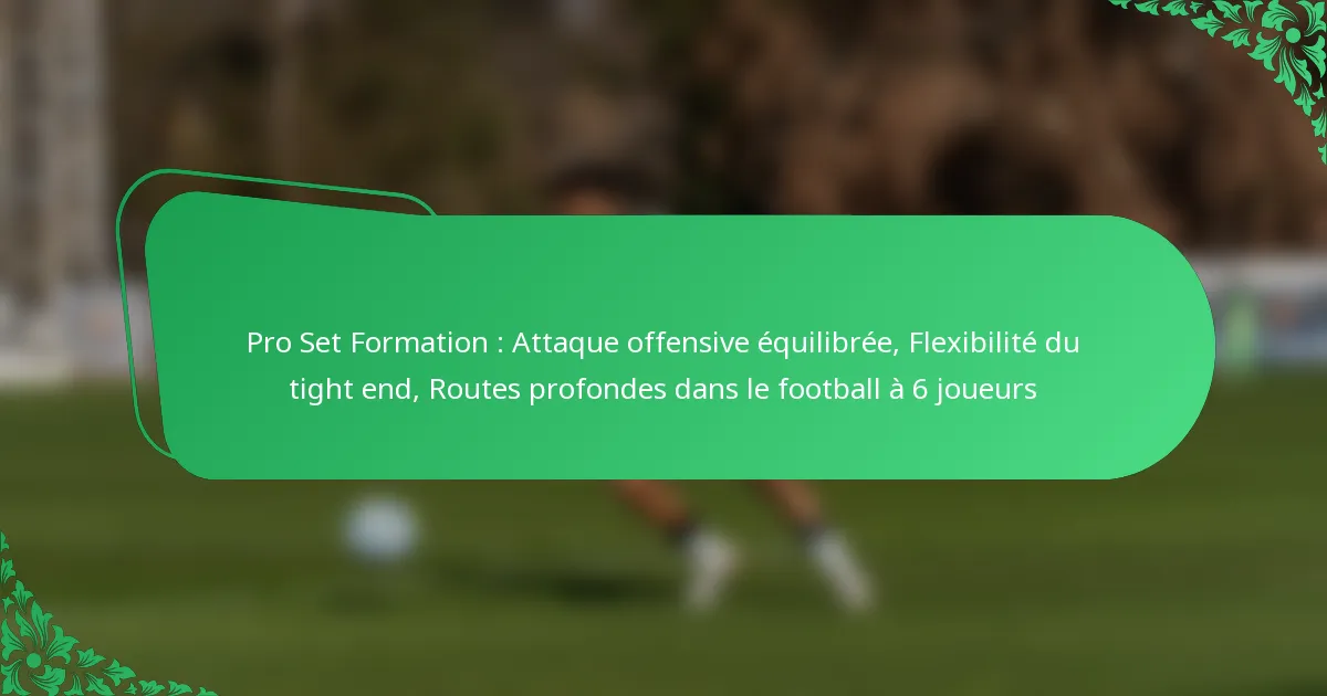 La formation Pro Set dans le football à 6 est une stratégie offensive efficace qui met l’accent sur l’équilibre en incorporant deux porteurs de ballon et deux receveurs. Cette configuration améliore non seulement la flexibilité dans les appels de jeu, mais permet également une profondeur dans les parcours offensifs, facilitant l’adaptation aux schémas défensifs. De plus, l’inclusion des tight ends ajoute de la polyvalence, permettant aux équipes d’exécuter efficacement à la fois des rôles de blocage et de réception.