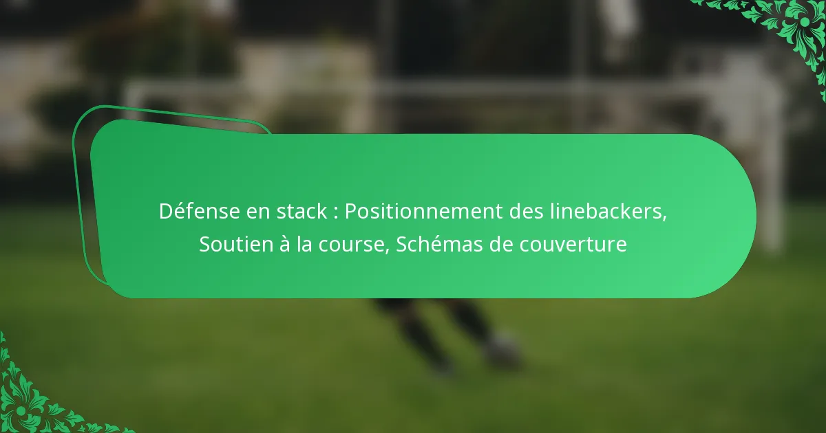 Le soutien contre la course dans la défense en stack se concentre sur le positionnement des linebackers pour contrer efficacement les jeux de course. Les stratégies clés impliquent l’utilisation de techniques appropriées, l’assurance d’une collaboration avec les joueurs de ligne défensive et la réalisation des ajustements nécessaires en fonction du type de course exécuté.